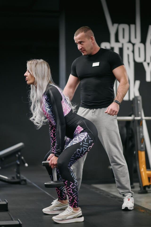 Он подбирает программу под цели и текущее состояние клиента, следит за техникой, объясняет логику каждого упражнения.